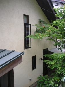 実は、ずいぶん前に建物は完成していたのですが、雨が続いて外まわりの左官の仕舞いが遅れ、その後コンピュータが故障したためアップが遅れました。