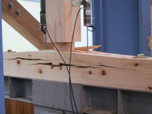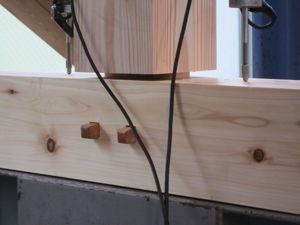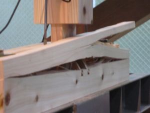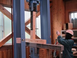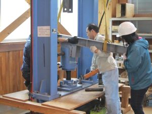 森林文化アカデミーで、木づくりの家の会が今後使おうと思う仕口(2本込み栓)の破壊試験を行ないました。