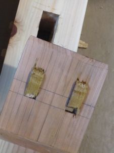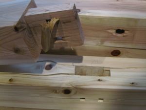 弱いと思われる木目の土台を使ったものは予想どおり土台が裂けましたが、その他のものはほとんどが込み栓が折れました。