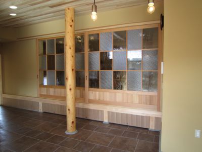 大きなガラス障子のガラスは、施主さんと一緒にガラス屋さんまで行って選んできたこだわりの建具です。