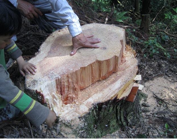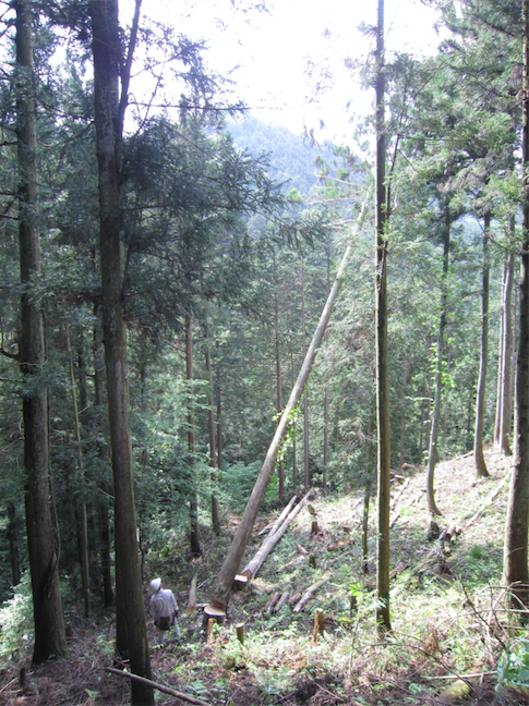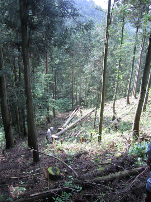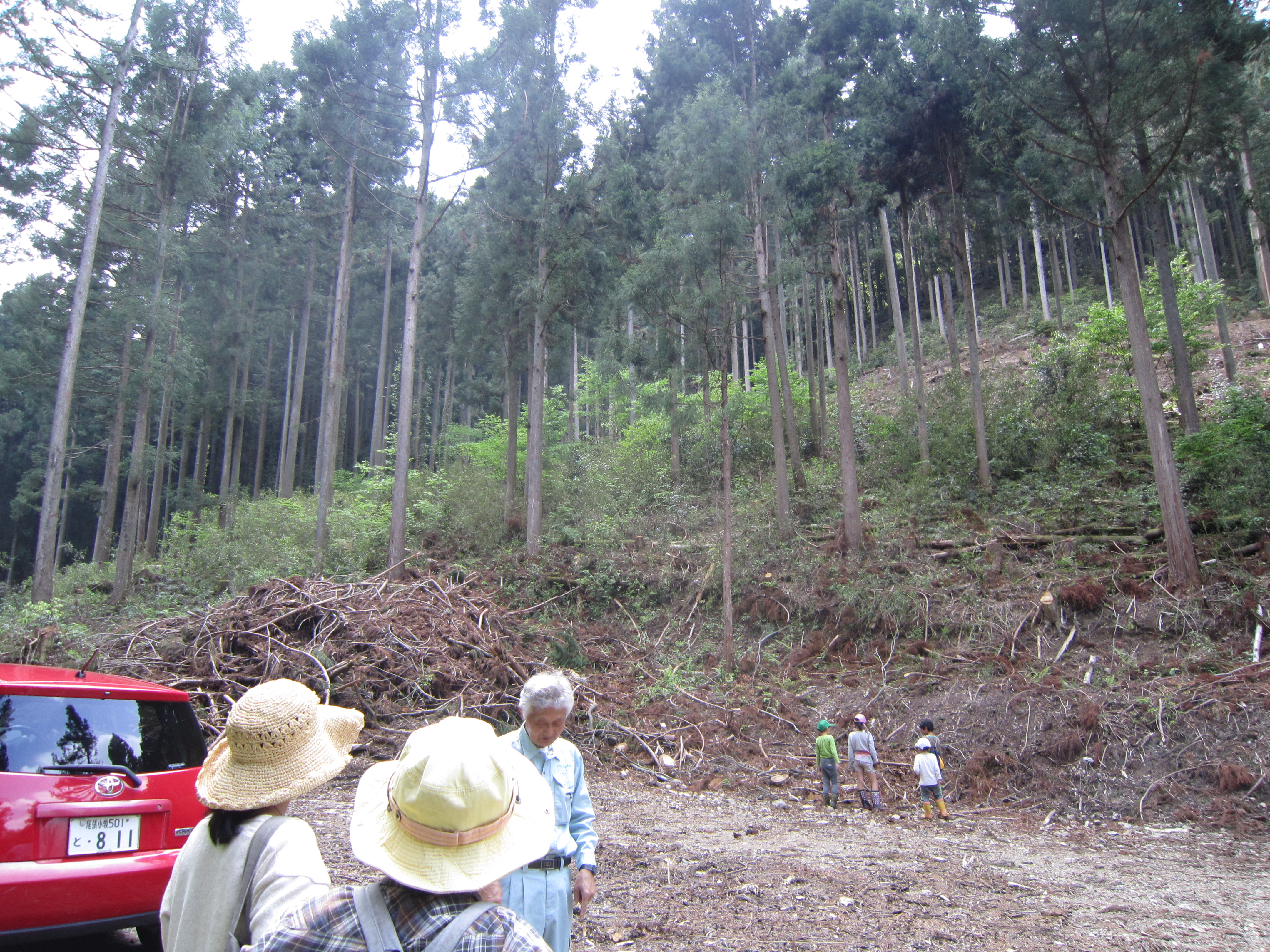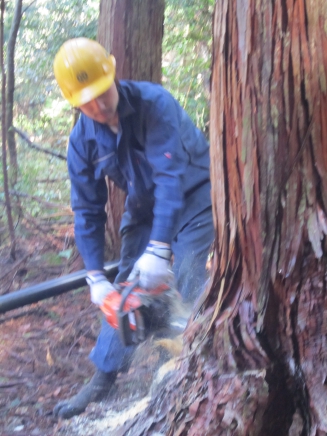 さて、林道を登りきったところで伐採を見せてもらいました。