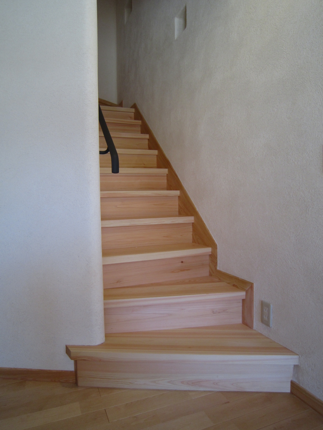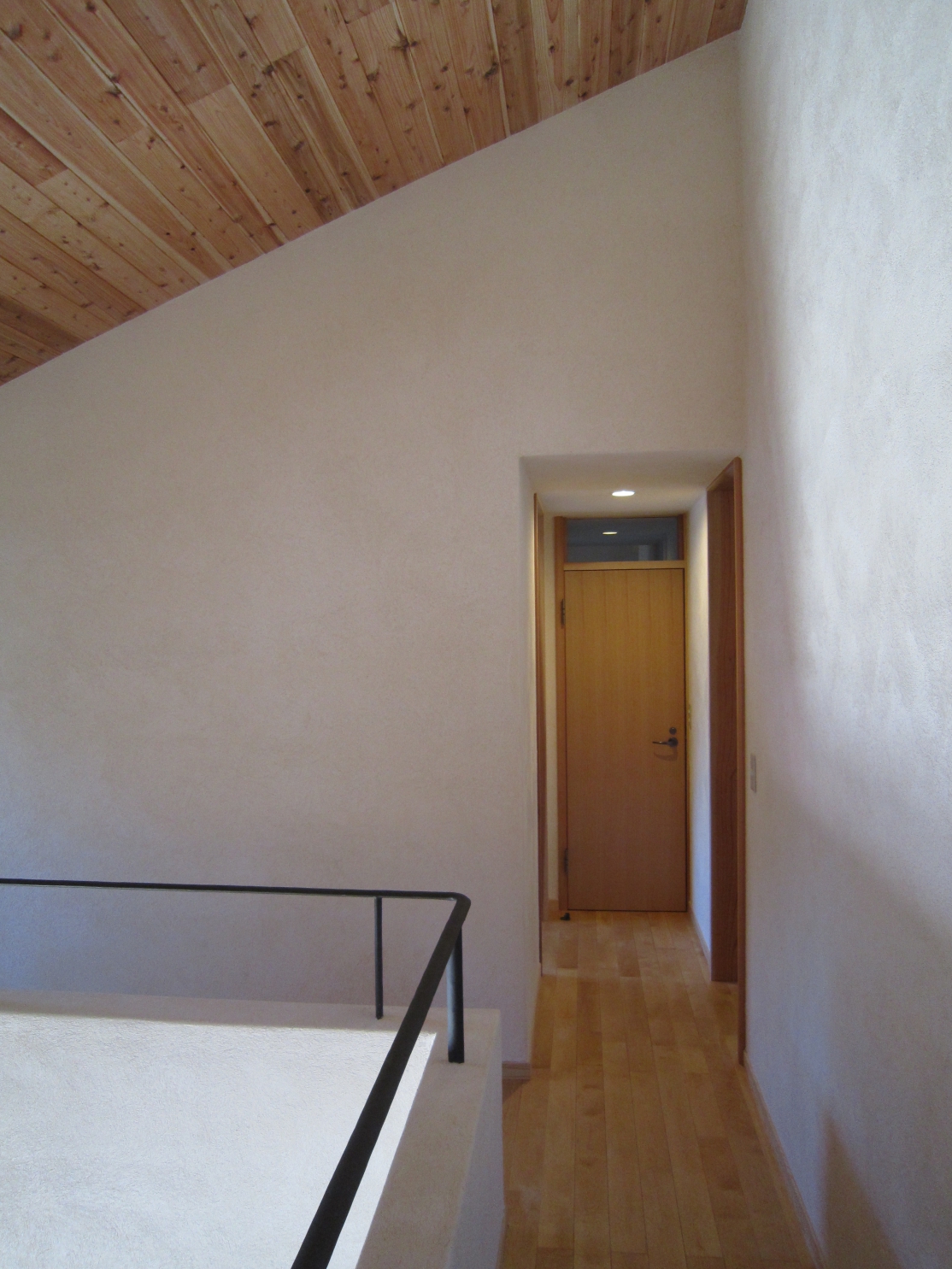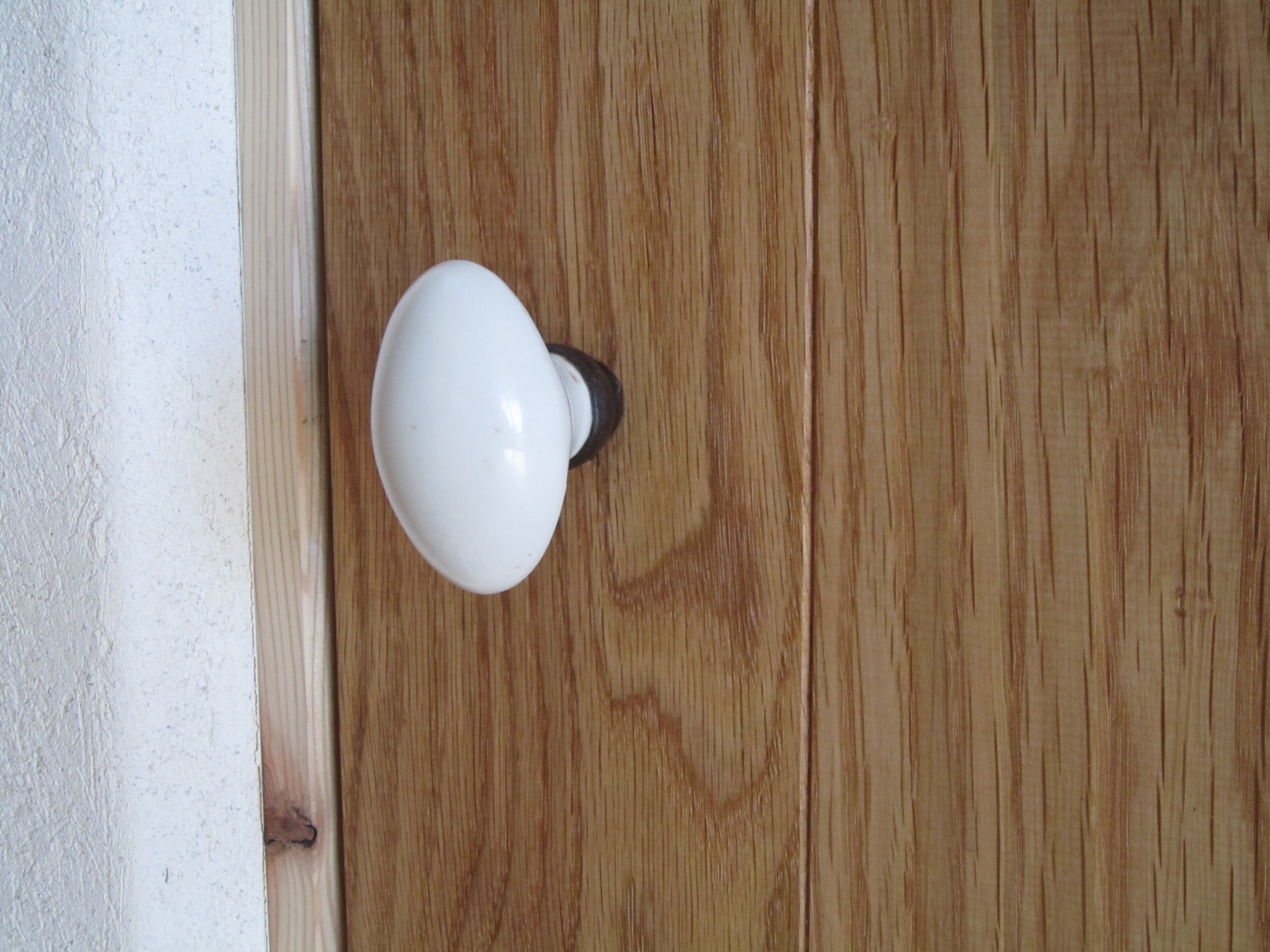 2階寝室。左の板の扉は小屋裏物置。施主さんがどこかに使いたいと言っていた把手を付けました。