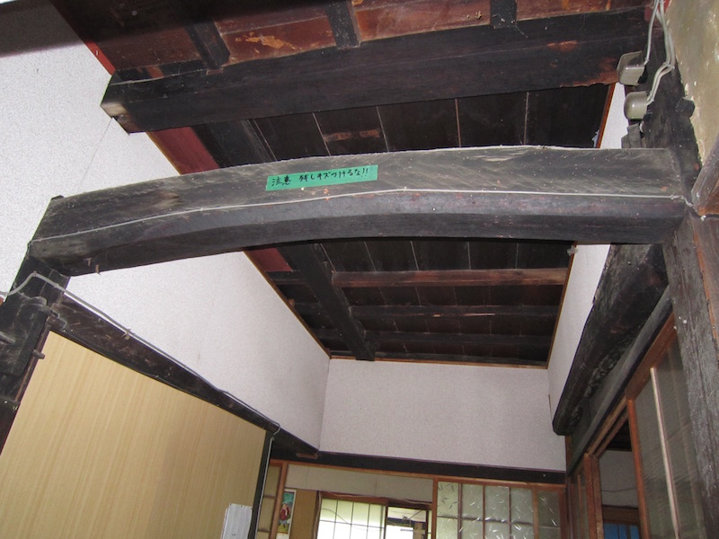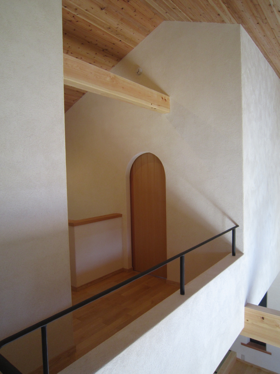 寝室から書斎への入り口。取り壊される古民家の梁を使いました。