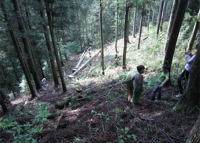 整備されたばかりの林道を登ります。子どもたちは元気で、へばり気味の大人たちの前を走ってゆきます。